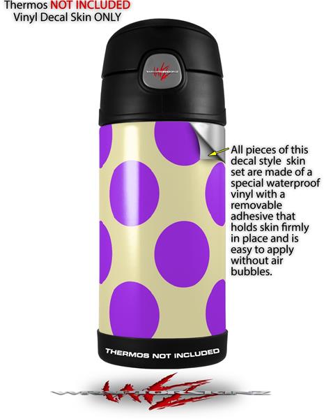 Skin Decal Wrap for Thermos Funtainer 12oz Bottle Kearas Polka Dots Purple On Cream (BOTTLE NOT INCLUDED) by WraptorSkinz