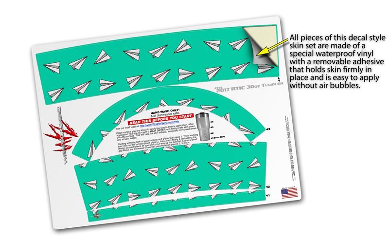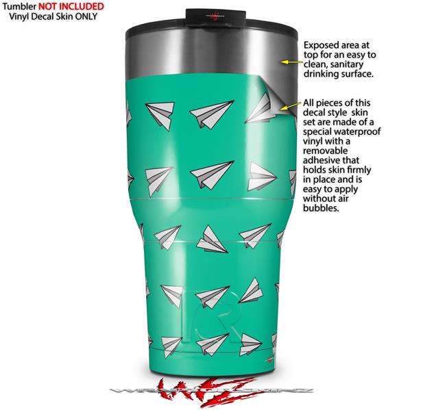 WraptorSkinz Skin Wrap compatible with 2017 and newer RTIC Tumblers 30oz Paper Planes Turquoise (TUMBLER NOT INCLUDED)