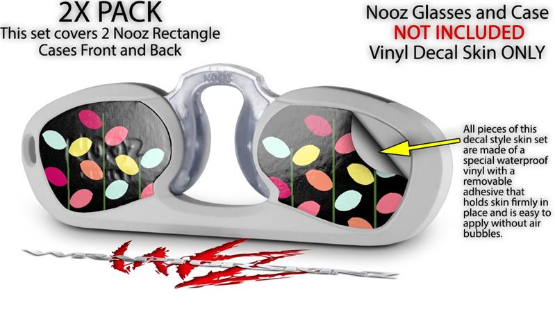 • Skin set covers front and back or two Nooz Rectangle Glasses Cases