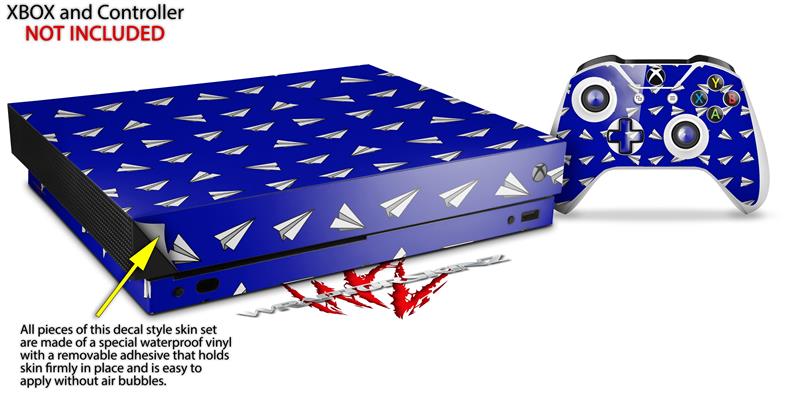 Skin Wrap for XBOX One X Console and Controller Paper Planes Royal Blue