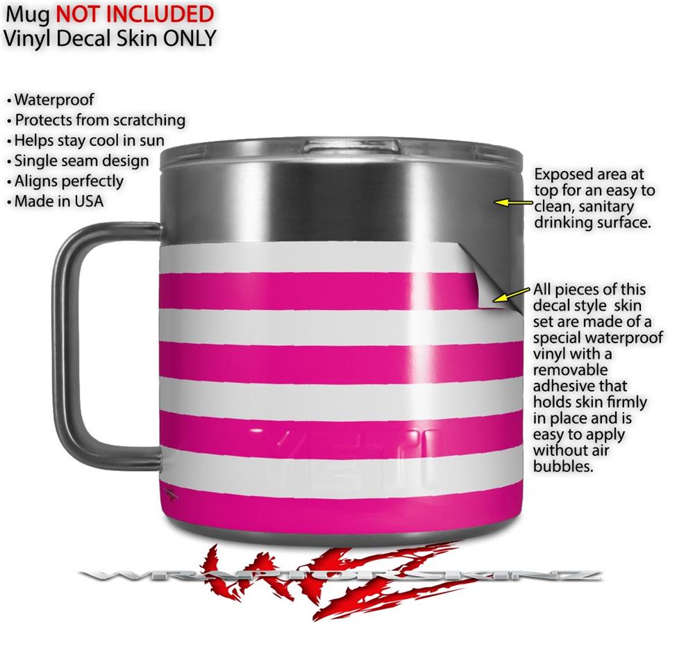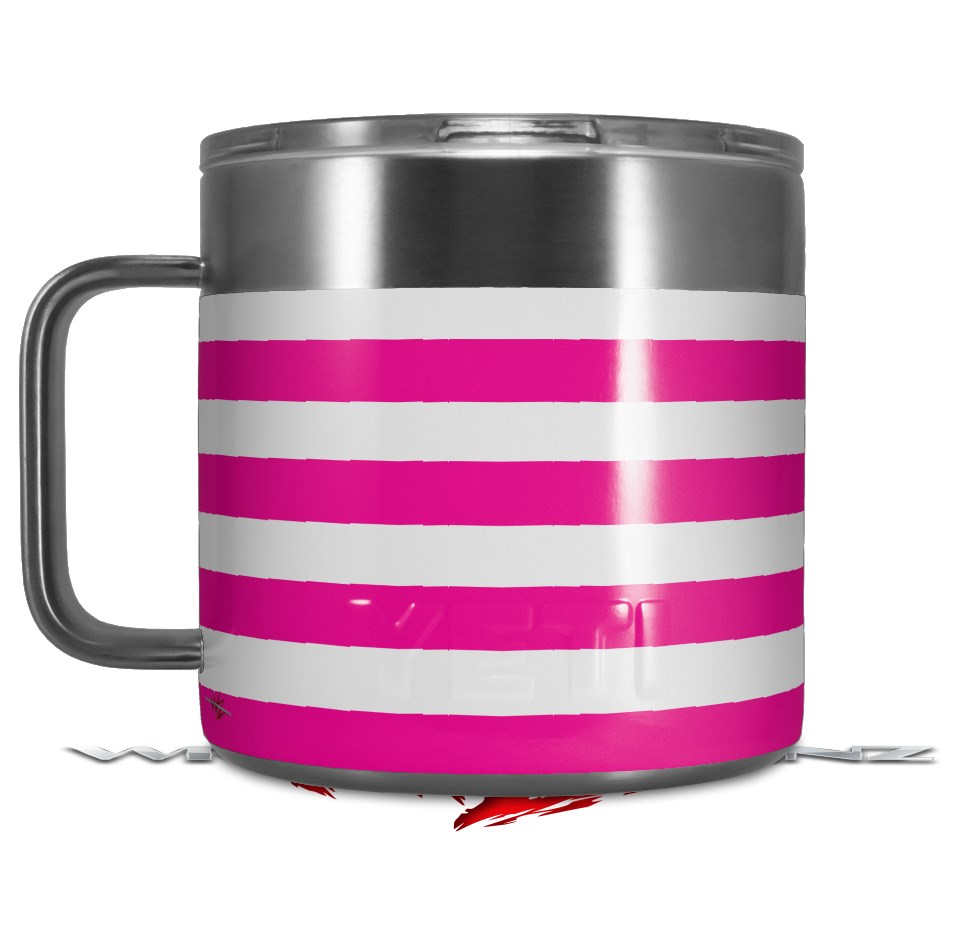 Skin Decal Wrap for Yeti Coffee Mug 14oz Psycho Stripes Hot Pink and White - 14 oz CUP NOT INCLUDED by WraptorSkinz