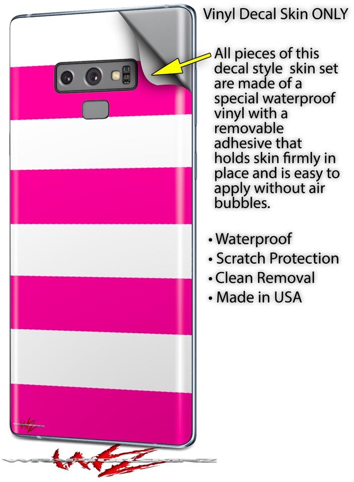 Decal style Skin Wrap compatible with Samsung Galaxy Note 9 Psycho Stripes Hot Pink and White