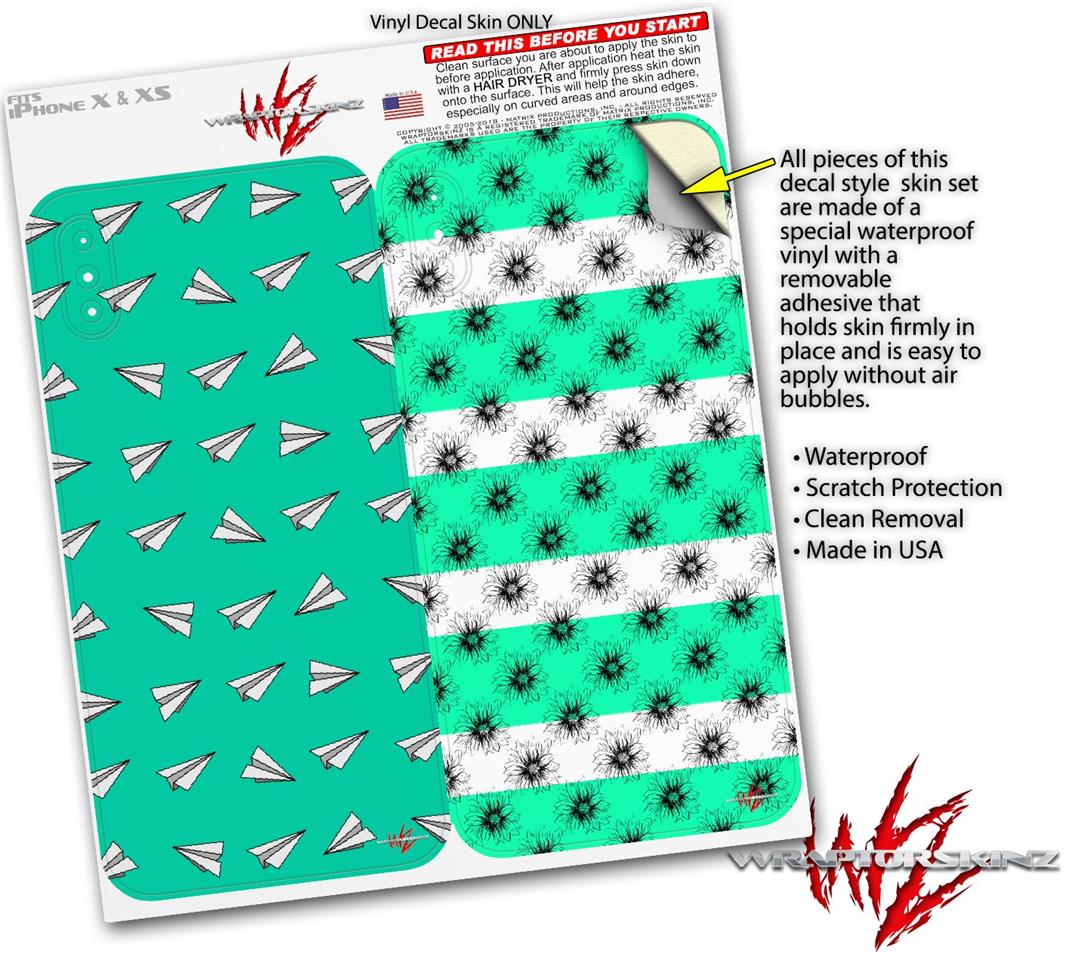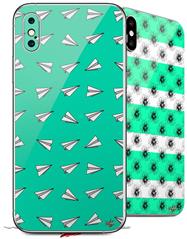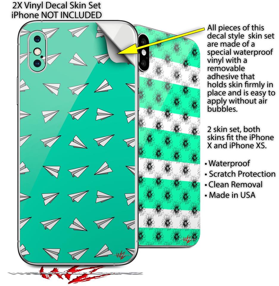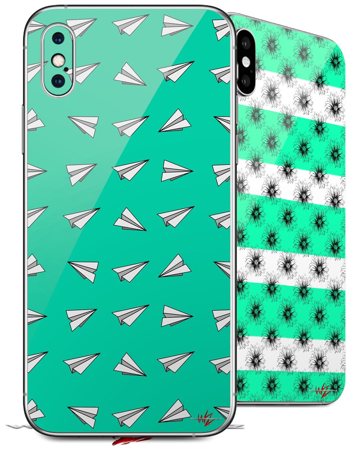 2 Decal style Skin Wraps set for Apple iPhone X and XS Paper Planes Turquoise