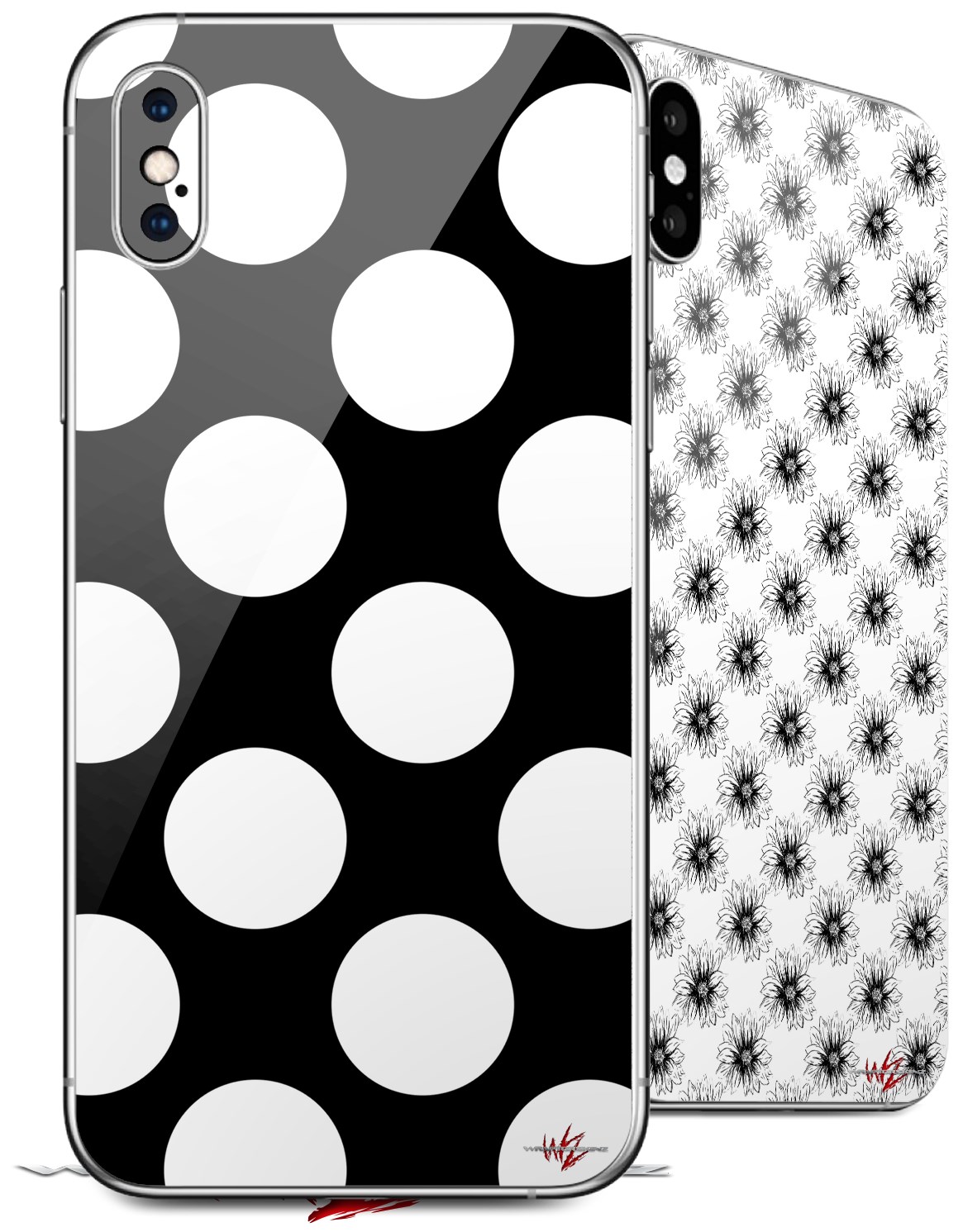 2 Decal style Skin Wraps set for Apple iPhone X and XS Kearas Polka Dots White On Black