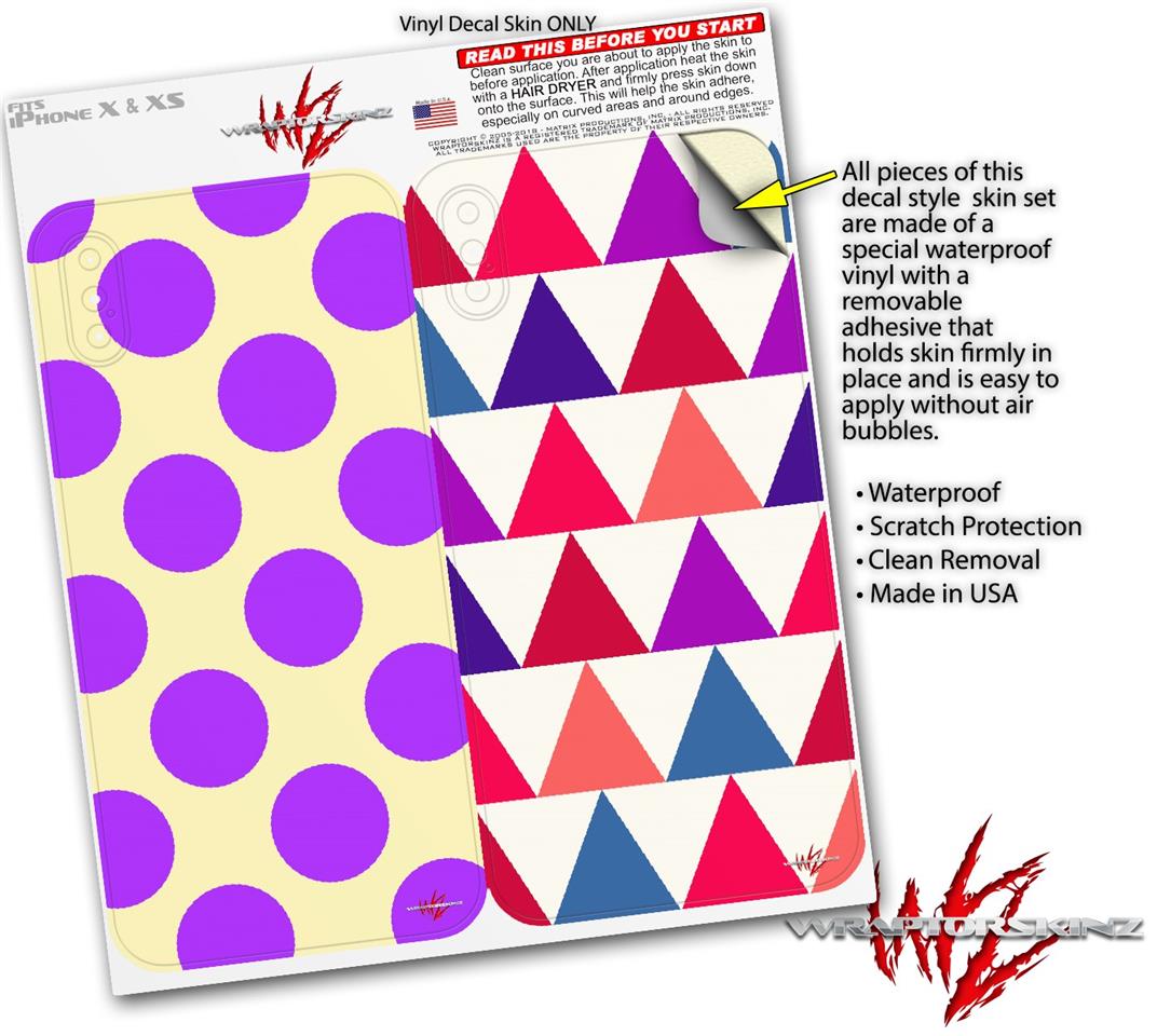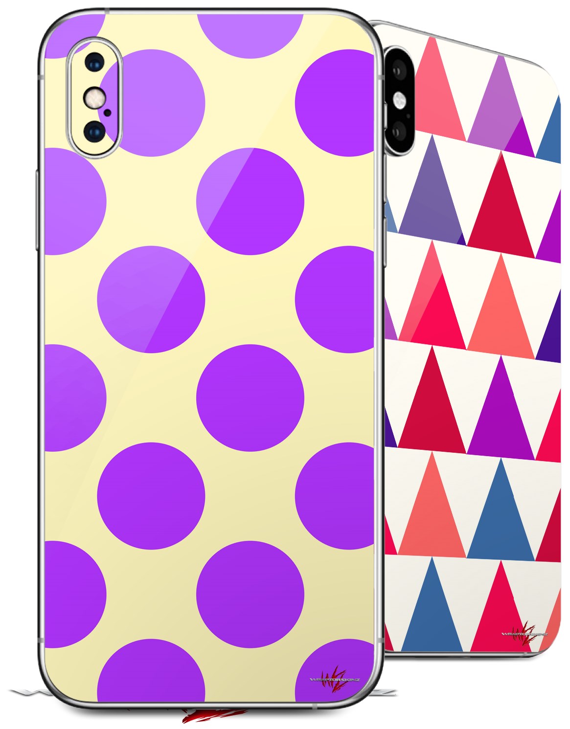 2 Decal style Skin Wraps set for Apple iPhone X and XS Kearas Polka Dots Purple On Cream