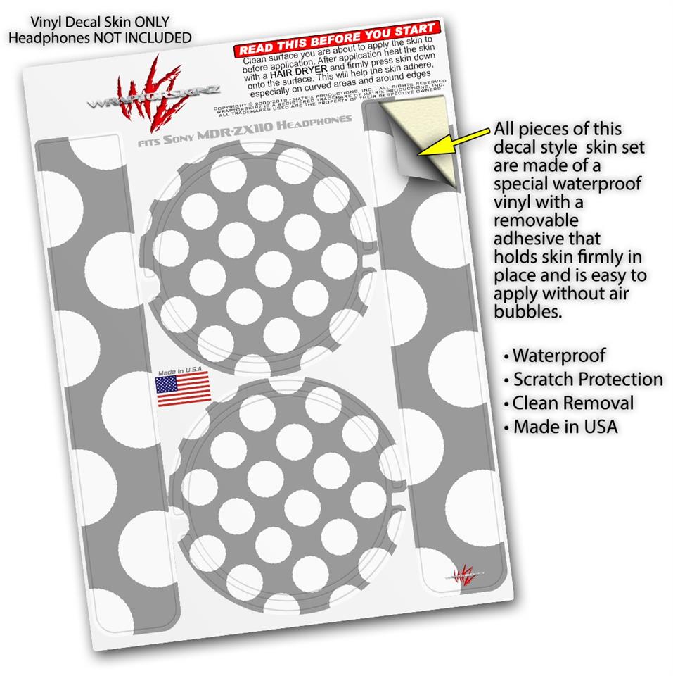 Decal style Skin Wrap for Sony MDR ZX110 Headphones Kearas Polka Dots Whtie On Gray (HEADPHONES NOT INCLUDED)