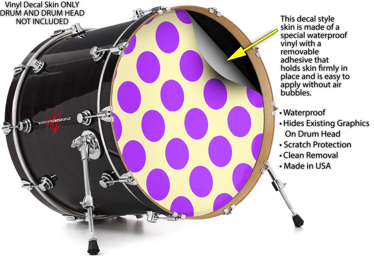 Vinyl Decal Skin Wrap for 20" Bass Kick Drum Head Kearas Polka Dots Purple On Cream - DRUM HEAD NOT INCLUDED