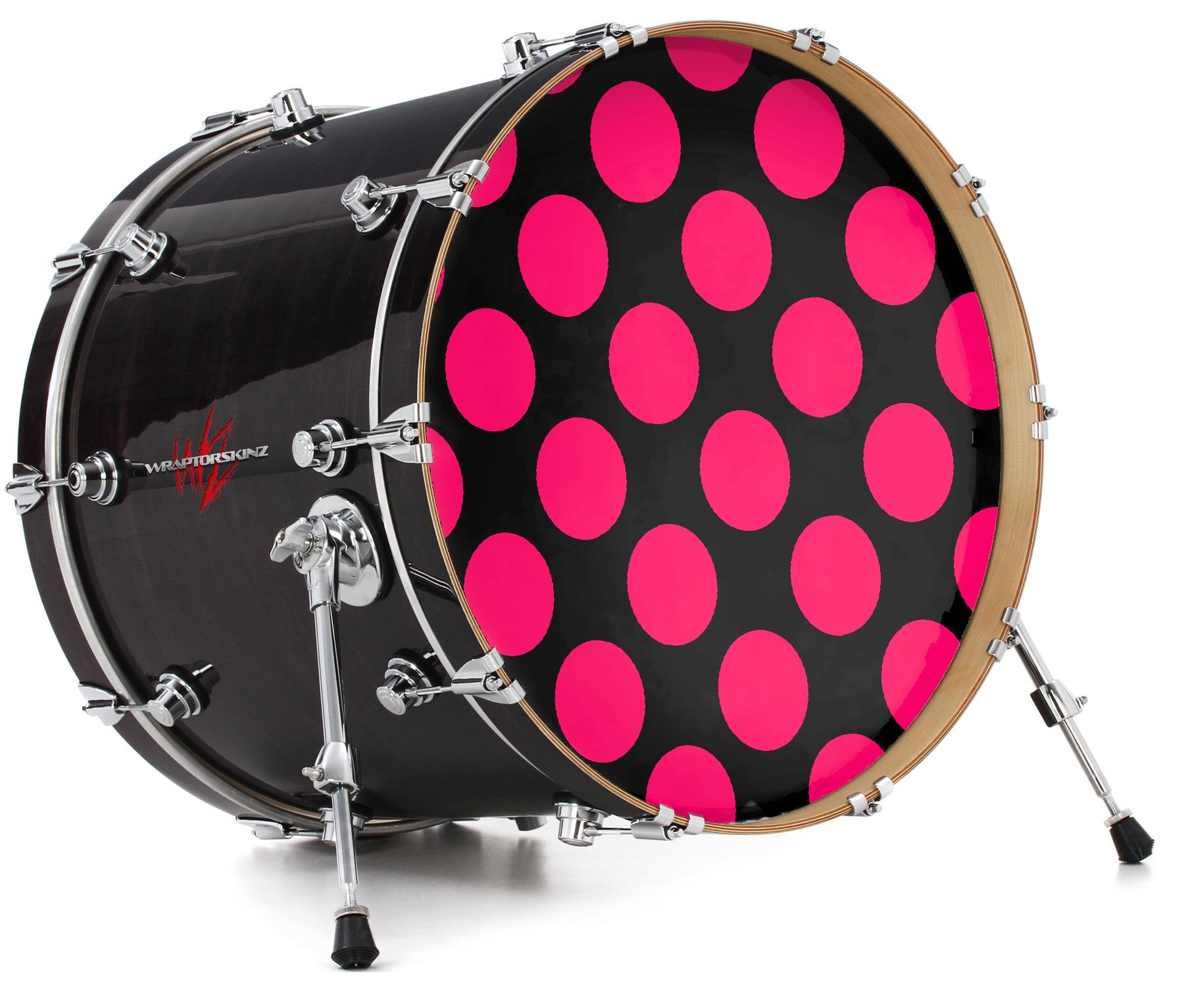Decal Skin works with most 24" Bass Kick Drum Heads Kearas Polka Dots Pink On Black - DRUM HEAD NOT INCLUDED