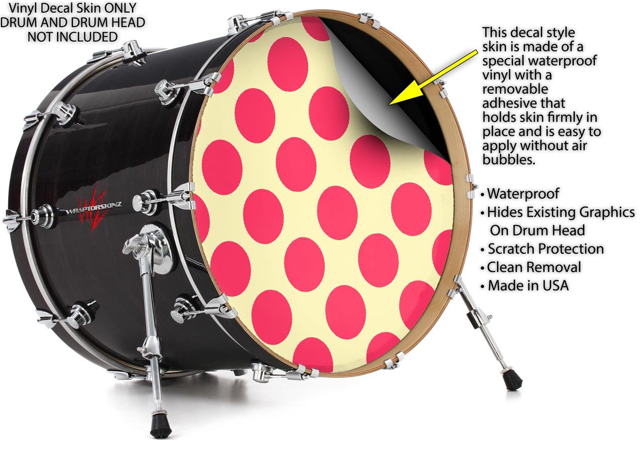 Decal Skin works with most 26" Bass Kick Drum Heads Kearas Polka Dots Pink On Cream - DRUM HEAD NOT INCLUDED