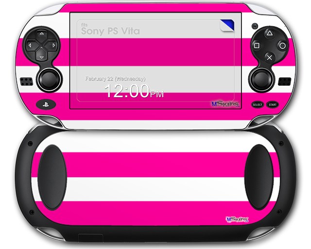 Psycho Stripes Hot Pink and White - Decal Style Skin fits Sony PS Vita
