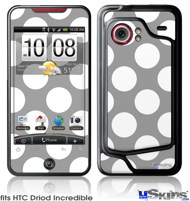 HTC Droid Incredible Skin - Kearas Polka Dots Whtie On Gray