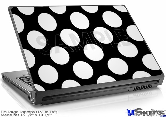 Laptop Skin (Large) - Kearas Polka Dots White On Black