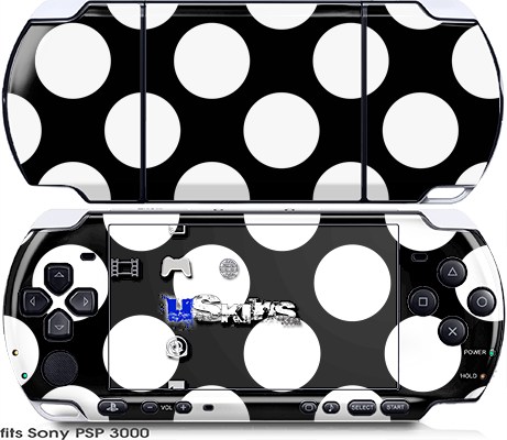 Sony PSP 3000 Skin - Kearas Polka Dots White On Black