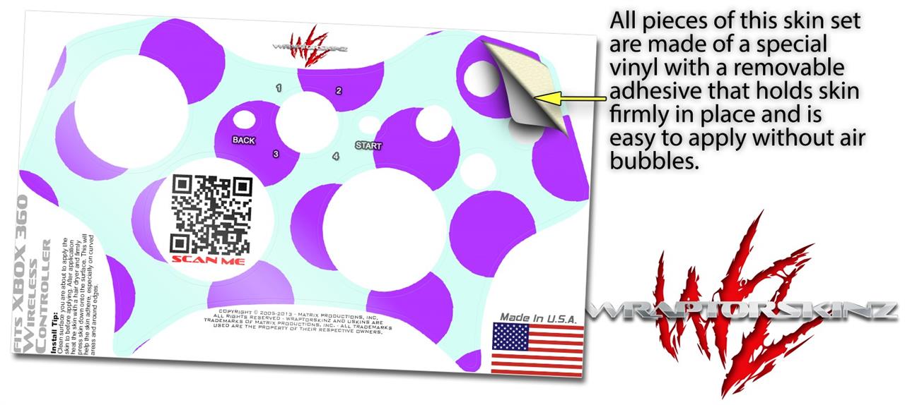 XBOX 360 Wireless Controller Decal Style Skin - Kearas Polka Dots Purple And Blue (CONTROLLER NOT INCLUDED)
