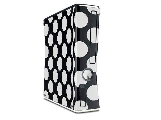 Kearas Polka Dots White On Black Decal Style Skin for XBOX 360 Slim Vertical