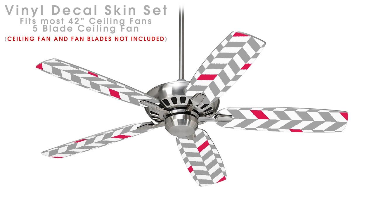 Chevrons Gray And Raspberry - Ceiling Fan Skin Kit fits most 42 inch fans (FAN and BLADES SOLD SEPARATELY)