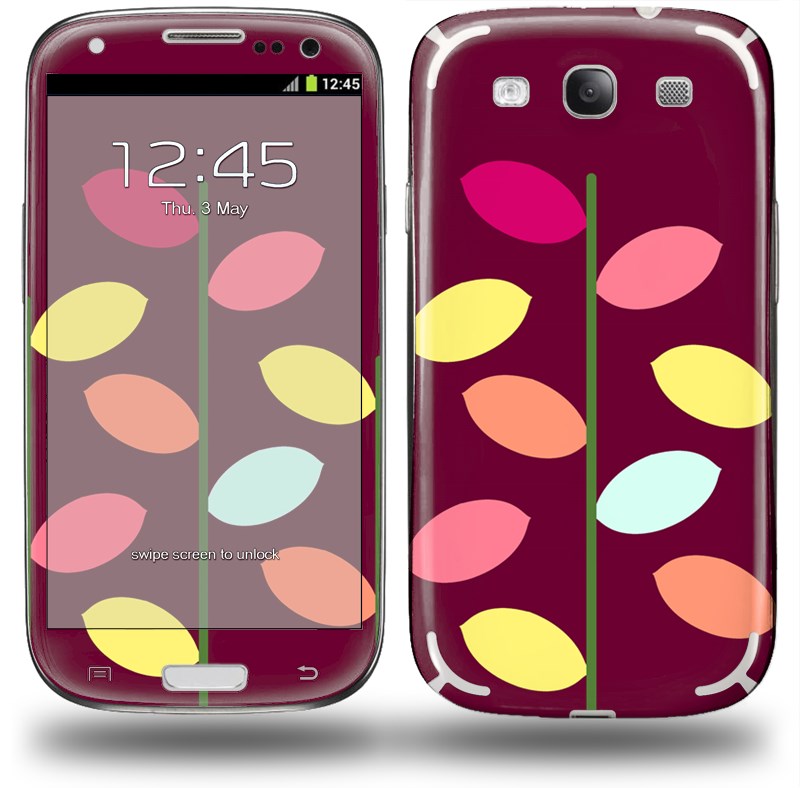 Plain Leaves On Burgundy - Decal Style Skin (fits Samsung Galaxy S III S3)