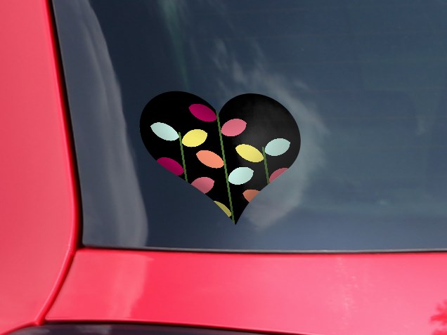 Plain Leaves On Black - I Heart Love Car Window Decal 6.5 x 5.5 inches