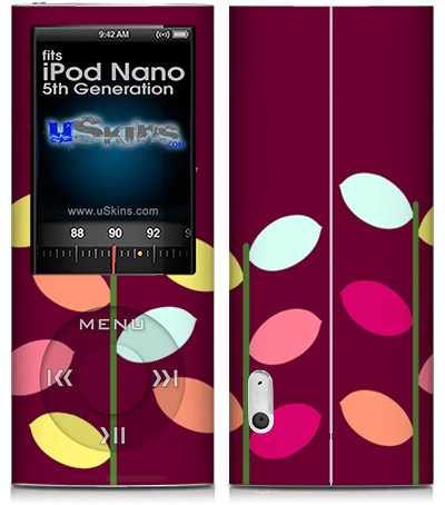 iPod Nano 5G Skin - Plain Leaves On Burgundy