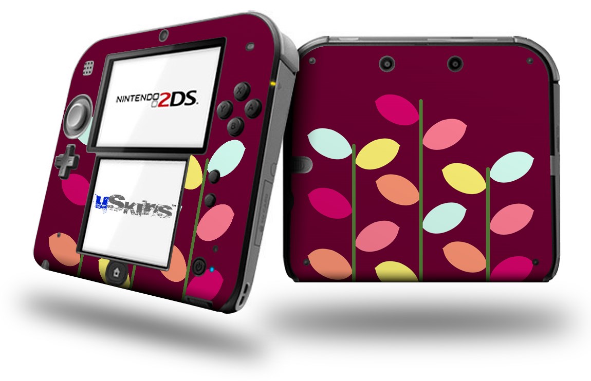 Plain Leaves On Burgundy - Decal Style Vinyl Skin fits Nintendo 2DS - 2DS NOT INCLUDED