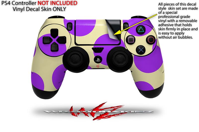 WraptorSkinz Skin compatible with Sony PS4 Dualshock Controller PlayStation 4 Original Slim and Pro Kearas Polka Dots Purple On Cream (CONTROLLER NOT INCLUDED)