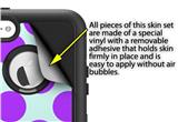 uSkins™ are self adhering vinyl decal style skins and are a great way to add a new look to your existing protective case. uSkins are a composite of two layers of commercial grade materials. The bottom layer is a soft, flexible vinyl with a special removable adhesive that is easily positioned, applied without air bubbles. Next we print the bottom layer with UV protected, fade resistant inks that deliver superb photo quality designs in vibrant colors. Finally we bond a professional grade laminate over the entire skin adding a glossy protective finish.