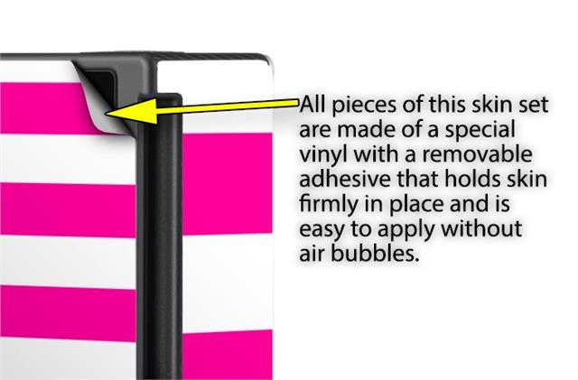 WraptoSkinz™ skins are superb photo quality designs and vibrant colors printed with special Eco-Friendly, fade resistant inks. Our skins are self-adhering flexible vinyl skins that helps prevent scratches. Made of composite, multi-layered commercial grade materials. The bottom layer is made with a special removable adhesive that is easily positioned and applied without air bubbles. We print your design on the bottom layer then bond a professional grade laminate over the entire skin adding a glossy protective finish.